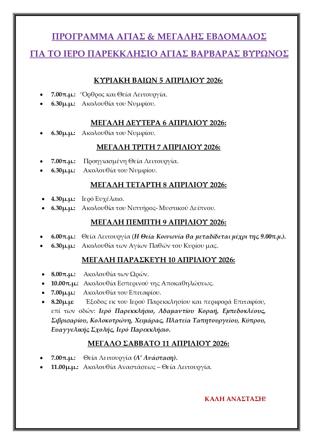 Επικοινωνία: -Email agia_triada@hotmail.gr
