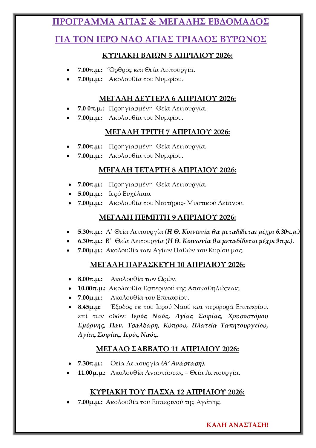 Ιερού Ναού Αγίας Τριάδος Βύρωνος!
