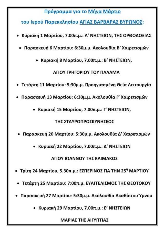 ΛΙΓΑ ΛΟΓΙΑ ΓΙΑ ΤΟ ΙΕΡΟ ΠΑΝΕΚΚΛΗΣΙΟ ΑΓΙΑΣ ΒΑΡΒΑΡΑΣ ΒΥΡΩΝΟΣ